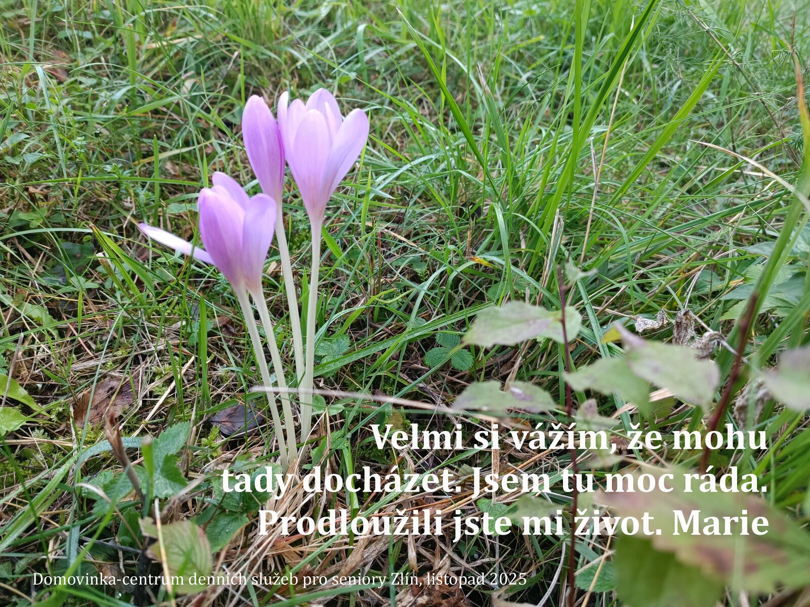 I když už v azylovém domě nejsem, pořád na všechny vzpomínám. Srdečně děkuji za pomoc a lidskost pro mne a mé děti během našeho pobytu. Tady jsme v těžké době našli bezpečí, klid a naději. Moc si vážím pochopení a vstřícnosti, kterou jste nám poskytovali. Všechno to má pro nás veliký význam. Pomáháte lidem postavit se znovu na nohy a neztratit víru v lepší život. Jsem vám velice vděčná za všechno, co jste pro nás udělali. Přeji všem v domově hodně štěstí v tak důležité práci. Děkuji, Z.